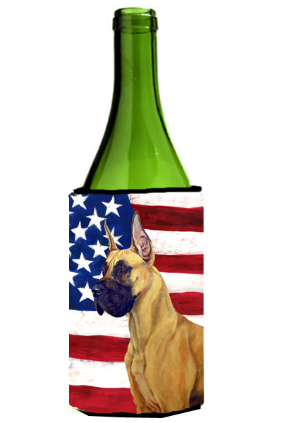 Caroline's Treasures LH9025LITERK USA American Flag with Great Dane Wine Bottle Hugger Bottle Cooler Sleeve Hugger Machine Washable Collapsible Insulator Beverage Insulated Holder