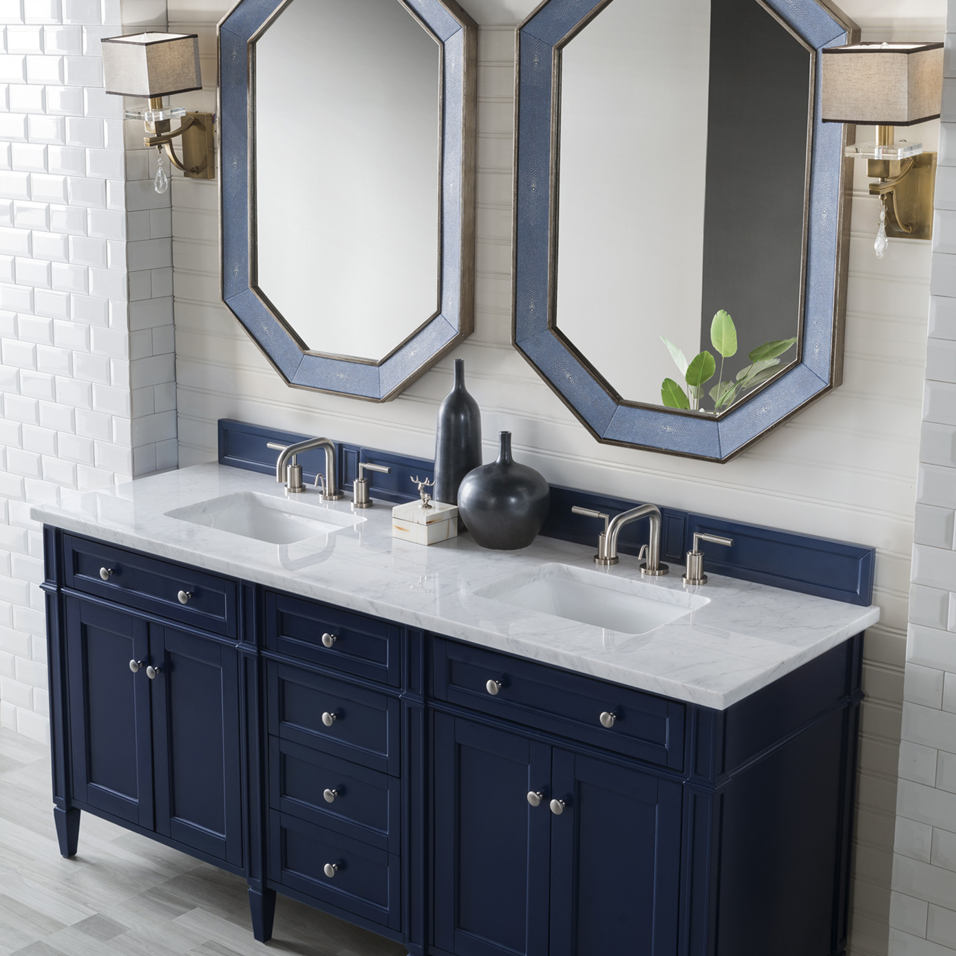 James Martin 650-V72-VBL-3CAR Brittany 72" Double Vanity, Victory Blue with 3 CM Carrara Marble Top