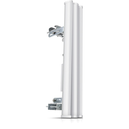 Ubiquiti AM-5G19-120 UISP airMAX 2x2 BaseStation 5 GHz, 19 dBi, 120º Sector Antenna with Rocket M BaseStation for Sector Coverage in Point-to-MultiPoint (PtMP) Networks<br><br> The airMAX Sector Antenna is a carrier-class 2x2 dual-polarity MIMO sector antenna that was designed to seamlessly integrate with Rocket radios (Rocket sold separately). On the right is one example of how the airMAX Sector Antenna can be deployed in a Point-to-MultiPoint (PtMP) network.<br><br> Key Features<br> - High Performance, Long Range<br> - Seamlessly Integrates with Rocket Radio<br> - Excellent Cross-Polarization Isolation<br> - Designed with robust mechanical for outdoor application use<br> - Plug and Play Integration<br><br> Specifications<br> - Frequency Range: 5.15 - 5.85 GHz<br> - Gain: 18.6 - 19.1 dBi<br> - HPOL Beamwidth: 123° (6 dB)<br> - VPOL Beamwidth: 123° (6 dB)<br> - Electrical Beamwidth: 4°<br> - Electrical Downtilt: 2°<br> - Max. VSWR: 1.5:1<br> - Wind Survivability: 125 mph<br> - Wind Loading: 20 lbf @ 100 mph<br> - Polarization: Dual-Linear<br> - Cross-pol Isolation: 28 dB Min.<br> - ETSI Specification: EN 302 326 DN2<br> - Mounting: Universal Pole Mount, RocketM Bracket, and Weatherproof RF Jumpers Included<br> - Dimensions: 700 x 135 x 73mm (27.56" x 5.32" x 2.87")<br> - Weight: 5.9 kg (13 lbs)<br><br>
