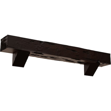 4" H x 4" D x 60" W Pecky Cypress Faux Wood Fireplace Mantel Kit w/ Breckinridge Corbels, Premium Mahogany