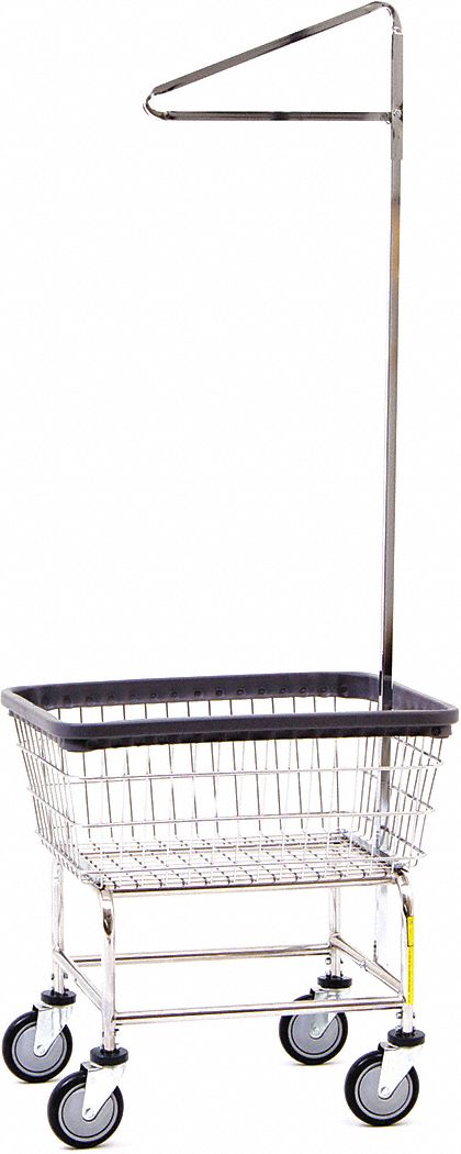R&B Wire™ 100D91 Narrow Heavy Duty Wire Laundry Cart with Single Pole Rack, 2 Bushel, Chrome, Made in USA