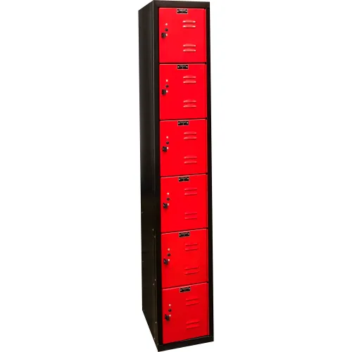 Hallowell® 6-Tier 6 Door Tie Locker, 12"W x 18"D x 72"H, Black/Red, Assembled