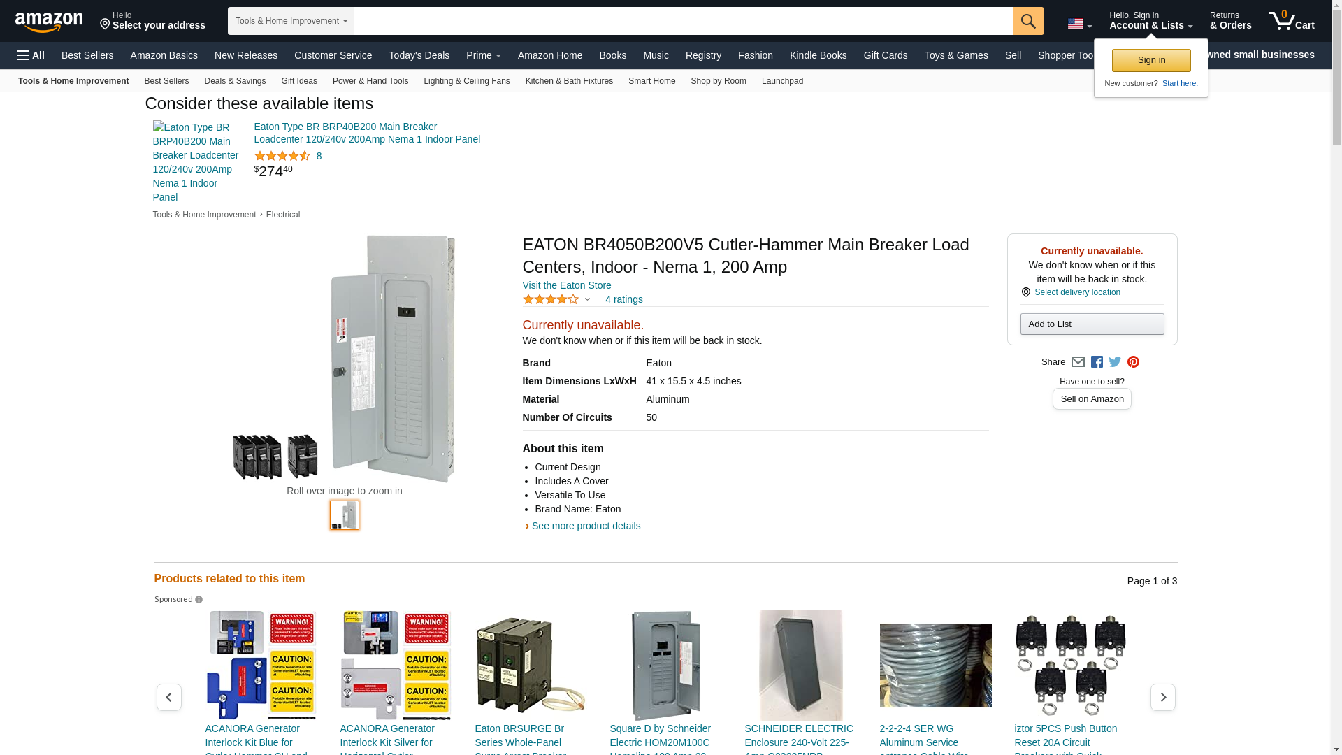 EATON BR4050B200V5 Cutler-Hammer Main Breaker Load Centers, Indoor-Nema 1, 200 Amp