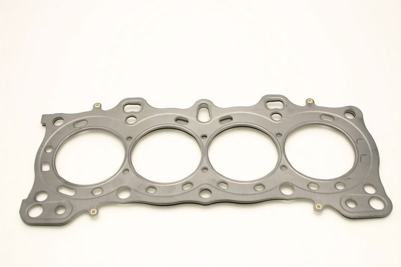 (DOHC 75.5MM - MLS .030") Built for the Acura Integra... The Cometic MLS gasket is comprised of three layers of Stainless Steel. Cometic uses Stainless steel for increased strength, its ability to rebound and corrosion resistance. The outer layers of the gasket are embossed and coated on both sides with a flouroelastomer rubber based material (Viton) designed to meet the demands of a variety of harsh sealing environments, load conditions and surface finishes. The Viton coating is heat resistant to 2500C or 4820F.The center or shim layer of the gasket is comprised of an uncoated Stainless Steel layer, which can be varied to accommodate multiple thickness requirements. The MLS gasket is ideal for both aluminum heads to cast iron blocks and aluminum heads to aluminum blocks.The composition of MLS will also withstand the shearing forces created by aluminum heads on cast iron blocks. No re-torque is necessary. By design the MLS gasket promotes an even torque load across the sealing surface allowing for measurable reduced bore distortion.