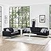 Modway Loft Upholstered Leather Mid-Century Modern Living Room Sofa and Loveseat Set in Black