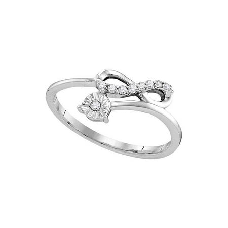 <ul> <li>Sterling Silver</li> <li>1/10 Carats total weight</li> <li>1.63 grams (approximately)</li> <li>Ring size selectable. All diamonds are natural and conflict-free in origin.</li> </ul>