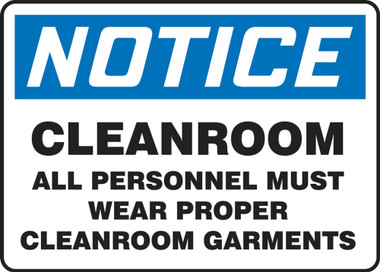 Notice Cleanroom All Personnel Must Wear Proper ClMaterial: .125 POLYCARBONATESize: 10X14