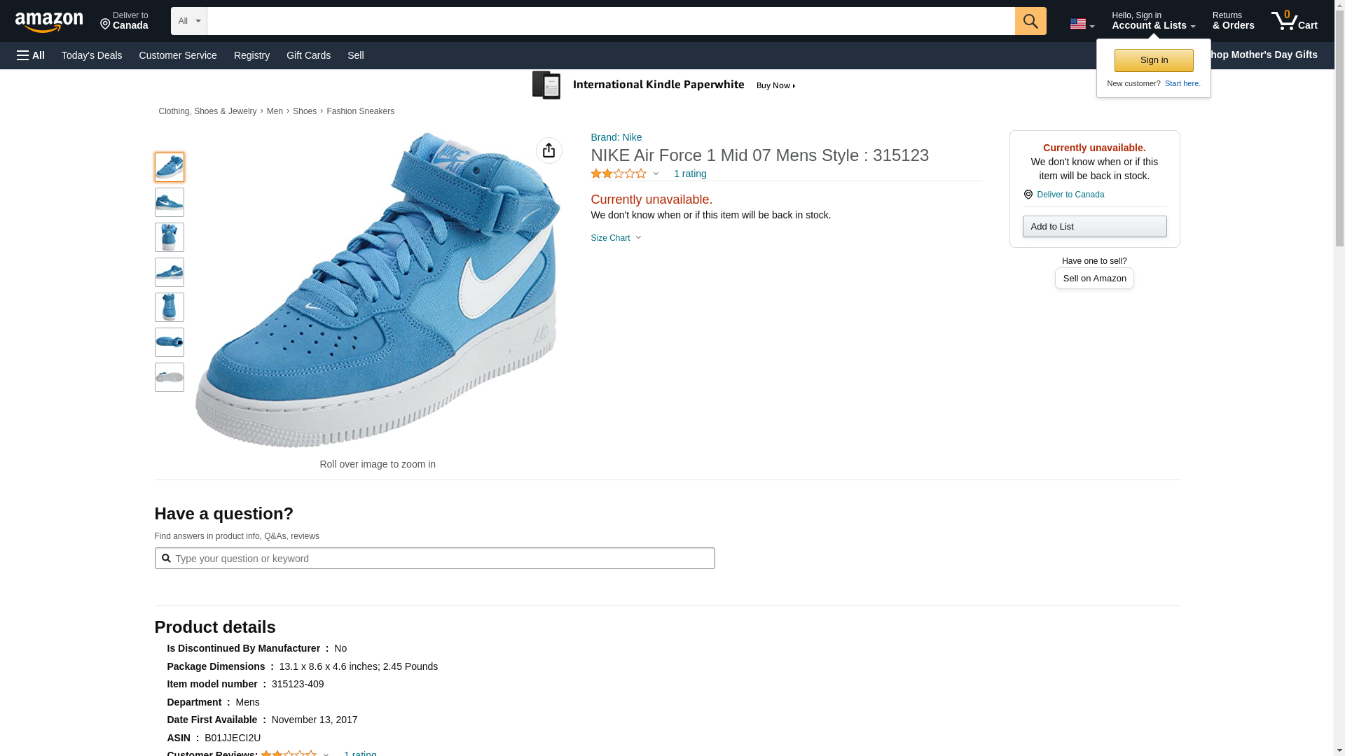 NIKE Air Force 1 Mid \07 Mens Style : 315123-409 Size : 6.5 D(M) US