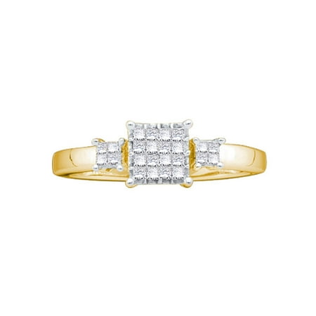 <ul> <li>14kt Yellow Gold</li> <li>1/5 Carats total weight</li> <li>2.47 grams (approximately)</li> <li>Ring size 7. All diamonds are natural and conflict-free in origin.</li> </ul>