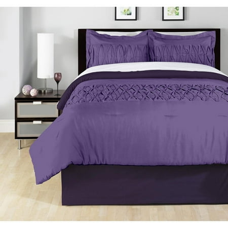 <br /> <b> Solid Pleated Bedding Comforter Set:</b> <ul> <li>Full/Queen set includes: comforter (96" x 90"), 2 shams (20" x 26") and 1 adjustable bedskirt with a 15" drop</li> <li>King set includes: comforter (108" x 96"), 2 shams (20" x 36") and 1 adjustable bedskirt with a 15" drop</li> <li>100 percent polyester</li> <li>Machine washable</li> </ul>
