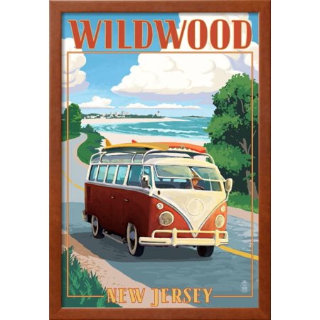 <ul> <li>Title: Wildwood, New Jersey - VW Van Coastal Drive</li> <li>Artist: Lantern Press</li> <li>Paper Type: Art Print</li> <li>Product Type: Framed Art Print</li> <li>Framed in SOHO Pecan</li> <li>Arrives ready-to-hang for fast, simple installation</li> <li>Framed Size: 22x32 in.</li> <li>Handcrafted in the USA</li> </ul>