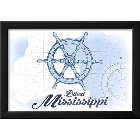 <ul> <li>Title: Biloxi, Mississippi - Ship Wheel - Blue - Coastal Icon</li> <li>Artist: Lantern Press</li> <li>Product Type: Framed Art Print</li> <li>Framed in SOHO Black</li> <li>Arrives ready-to-hang for fast, simple installation</li> <li>Framed Size: 22x15.5 in.</li> <li>Handcrafted in the USA</li> </ul>