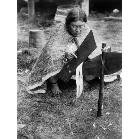 Preparing Cedar Bark C1914 Na NakWaxdaXw Woman Preparing Cedar Bark Possibly In British Columbia Photograph By Edward S Curtis C1914 Rolled Canvas Art - (24 x 36)