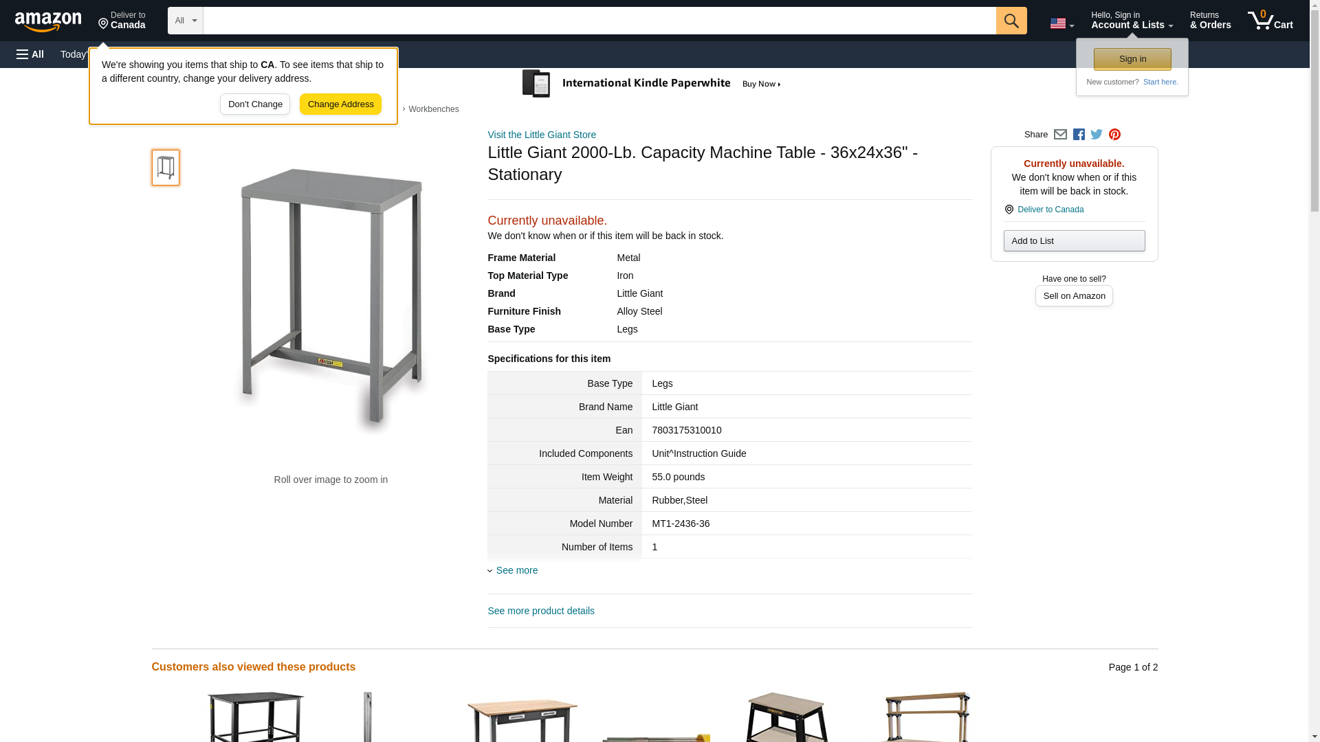 LITTLE GIANT 2000-Lb. Capacity Machine Table - 36x24x36" - StationaryChoose between mobile tables to move your equipment easily or stationary tables to handle heavier loads.All-welded units have a 12-gauge steel worksurface24"W and 36"W tables include: 1-1/2x1-1/2" angle iron legs and crossbars that are -1/8" thick48"W tables include: 1-1/2x1-1/2" angle iron legs and crossbars that are -3/16" thick with 1-1/2x1-1/2" surface support bracing that is -1/8" thickMobile units have 3" hard rubber swivel casters with brakesPowder coat finish, Lot of 1