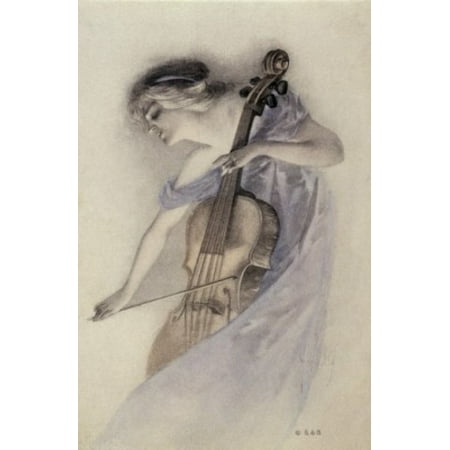 Stretched Canvas Art - Woman Playing Cello Nostalgia Cards - Medium 18 x 24 inch Wall Art Decor Size.