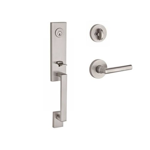 Baldwin Reserve SCSEAXTUBLCRR150THK Single Cylinder Seattle Handleset Left Hand Tube Lever and Contemporary Round Rose with 6AL Latch and Dual Strike for Thick Door Satin Nickel Finish
