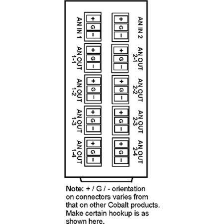 The Colbalt <b>RM20-9242-B</b> Analog Audio Distribution Amplifier with Remote Gain Control is a broadcast-quality balanced analog audio DA with stereo 2x4, mono 1x8, and stereo sum L+R x 8 selectable output modes. Unlike most analog audio DAs, the 9242 electronic attenuators allow overall gain (stereo ganged) and per-channel trim (offset) via DashBoardT remote control.</p><p>The space-saving design and very low power consumption of the 9242 provides for high density, allowing two cards to be collocated in adjacent slots and served by a single, standard-width "split" rear module.</p>
