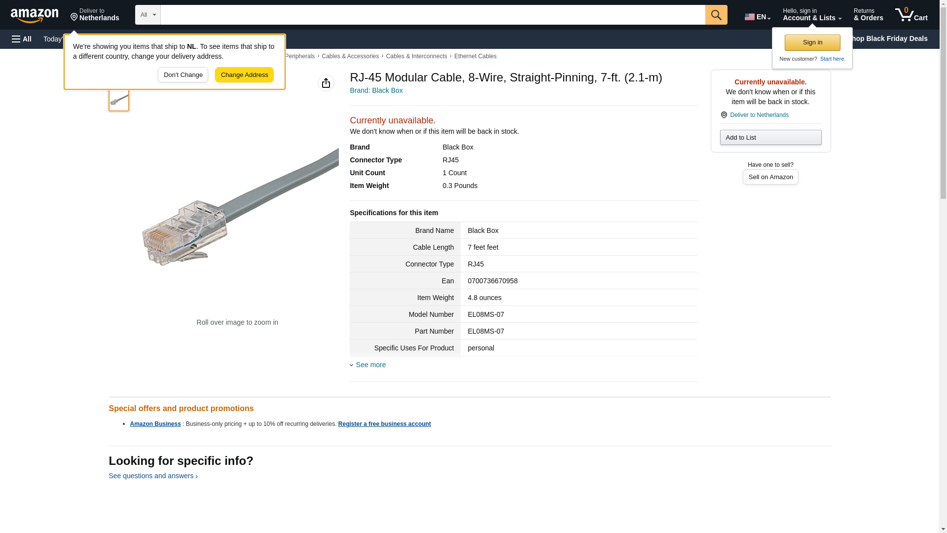 Black Box Rj-45 6-Wire Modular Cable 14-Ft - EL08MS-07