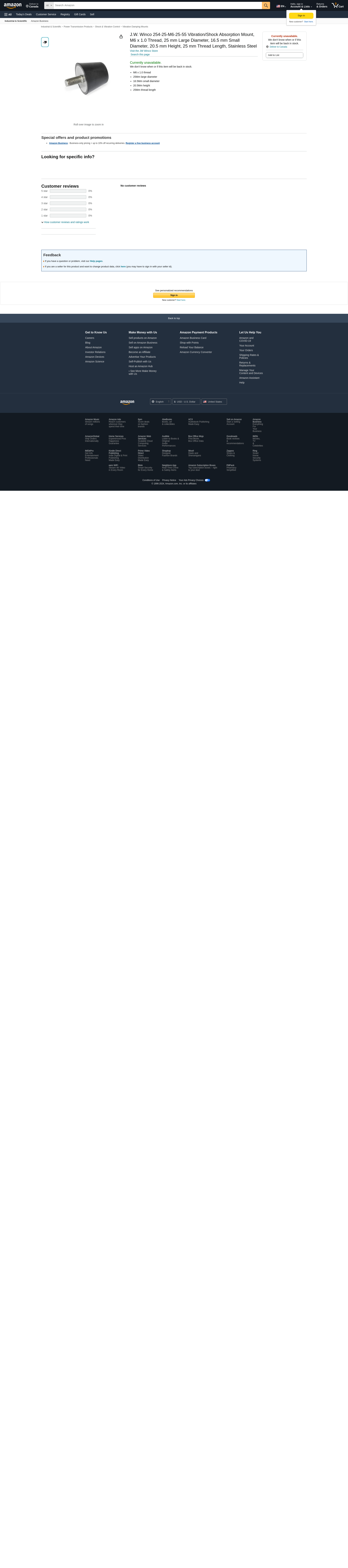 J.W. Winco 254-25-M6-25-55 Vibration/Shock Absorption Mount, M6 x 1.0 Thread, 25 mm Large Diameter, 16.5 mm Small Diameter, 20.5 mm Height, 25 mm Thread Length, Stainless Steel