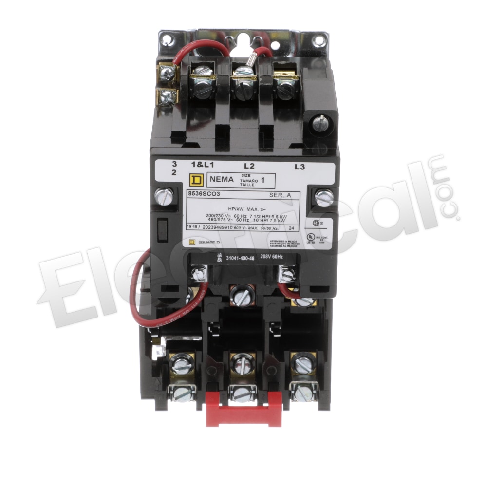 Mfr Brand Name: SQUARE D / Catalog No.: 8536SCO3V08 / Product Name: SQUARE D 8536SCO3V08 U Coil208 VACV 8536 USED / Amps: 27 / NEMA: 1 / Volts: 480 / Poles: 3 / Model: 8536 / Electrically Held: Yes / Coil: 208 VAC / Overload: Heater