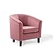 A fresh outlook on a familiar classic, the Prospect Performance Velvet Living Room Lounge Accent Armchair brings intrinsic luxury to your living space. This barrel back armchair comes upholstered in stain-resistant performance velvet fabric and boasts subtle chic details, updating the Chesterfield-inspired profile with retro modern design elements. The densely padded removable seat and backrest grant approachable comfort that beckons guests to sit and stay a while. Solidly constructed from wood and plywood, this accent chair rests securely on four tapered wooden legs with non-marking foot caps.<br/><br/>Features :<br/><br/>- Material: Performance velvet, rubberwood<br/>- Finish: Dusty rose pink, black<br/>- Modern barrel back armchair<br/>- Dense foam padded seat.<br/><br/>Specifications :<br/><br/>- Product Dimensions : 29.5"H x 30"W x 28"D<br/>- Product Weight : 29 lbs<br/>- Weight Capacity : 331 lbs.