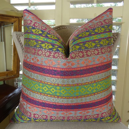 Plutus Brands Plutus Fuchsia Stripes Handmade Throw Pillow, 26" x 26", Magenta/Green/Blue