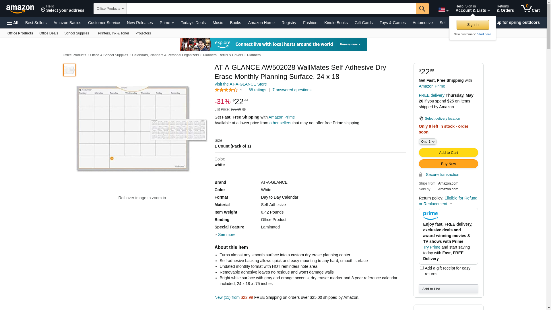Turns almost any smooth surface into a custom dry-erase planning center. Self-adhesive backing allows quick and easy mounting to any hard, smooth surface--just peel, stick and you're done. Available in weekly, monthly and calendar-year formats. Dry-erase marker included.