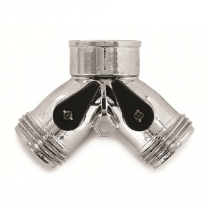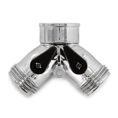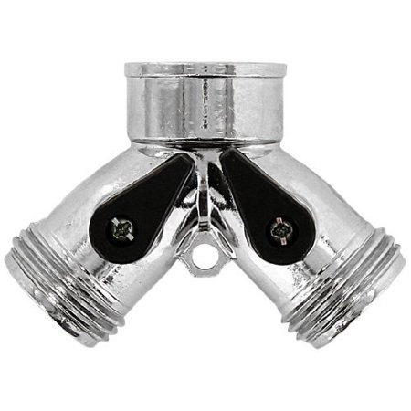 - Fresh Water Hose Connector; Double Hose Connector; Fits Standard Garden Hose Female Coupling; Metal; With Shut Off Valve; With Retail Package