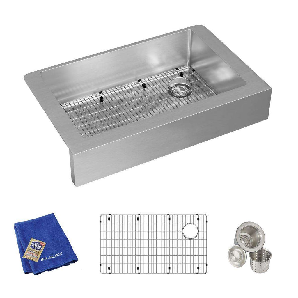 Elkay Crosstown 18 Gauge Stainless Steel 35-7/8" x 20-1/4" x 9" Single Bowl Farmhouse Sink Kit