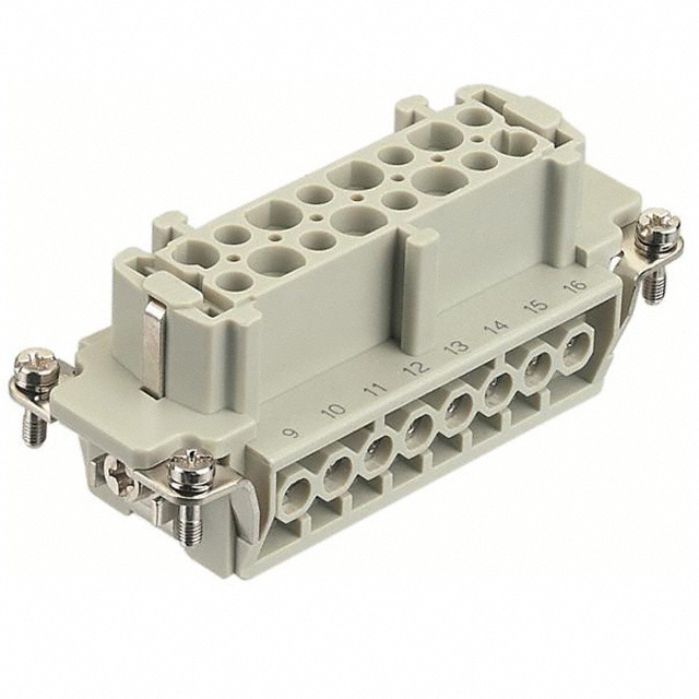 RECTANGULAR HAN INSERT, RECEPTACLE, 16 POSITION SCREW; Product Range:Han E Series; No. of Contacts:16Contacts; Rectangular Shell Size:16B; Gender:Receptacle; Heavy Duty Contact Type:Screw Socket; Current Rating:16A; No. of Rows:2 RoHS Compliant: Yes