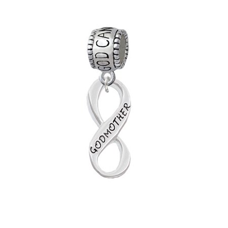 Silver Tone Godmother Infinity Sign - God Can Charm Bead Hanger. Silver Tone Godmother Infinity Sign charm is approx. 0.90 x 0.40 x 0.10 inches (HxWxD) not including loop. Smooth on both sides. Charm Hanger Bead is approx. 13x10x8 mm (HxWxD) Hole size 5.5 mm. Our Charm Beads are compatible with most Charm Bead Bracelets. Also makes a great charms pendant. Featured charms is an exclusive Delight & Co. design. We are a family owned company for over 35 years in the U.S.A. PLEASE NOTE: Our products are lead safe, but are not intended for children 14 years and younger.