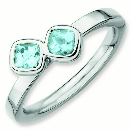 Sterling Silver Stackable Expressions Db Cushion Cut Aquamarine Ring - .61 Carat Gemstone Weight in Sterling Silver - Product Attributes: - Rhodium-plated - Polished - Bezel - Aquamarine - FREE gift-ready jewelry box - Ring Size Options: 10 5 6 7 8 9- Polished -- Aquamarine -- Bezel -- Rhodium-plated -
