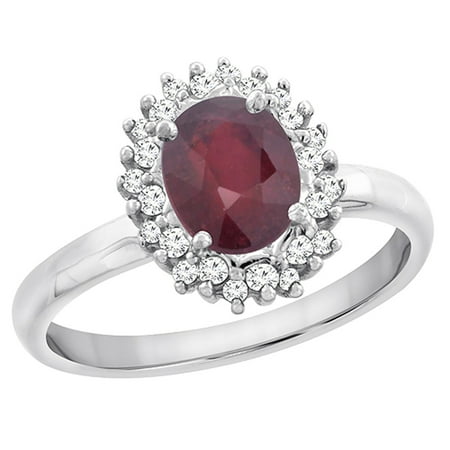 10K White Gold Diamond Enhanced Genuine Ruby Engagement Ring Oval 7x5mm, sizes 5 - 10
