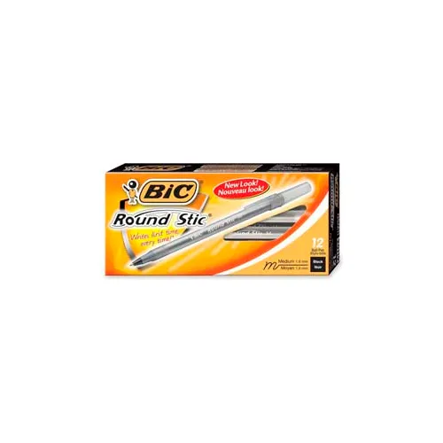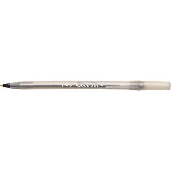 BIC Round Stic Ballpoint Pen, Med. Point,Frost Barrel/BK Ink (GSM11-BK)