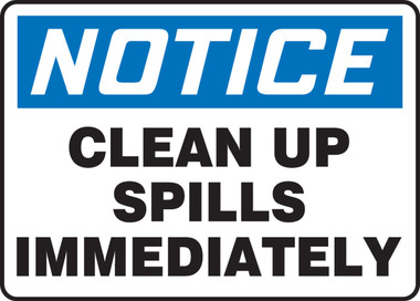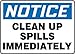 NOTICE CLEAN UP SPILLS IMMEDIATELY Sign - 7" x 10" Adhesive Vinyl