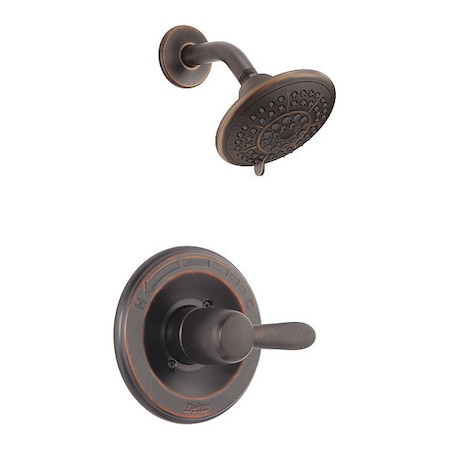 ADA Compliant: Yes. Drain Included: No. Escutcheon Dimensions: 7". Finish: Oil Rubbed Bronze. Handle Material: Metal. Handle Style: Lever. Handles Included: Yes. Includes: Valve trim, shower head, shower arm, lever handle. Made in: U.S.A.. Manufacturer Finish: Venetian Bronze. Manufacturer Warranty: Limited Lifetime. Manufacturers Collection Name: Lahara. Mounting Location: Wall Mount. Number of Handles: 1. Other Features: MultiChoice Universal Valve allows for future upgrades without altering plumbing, Monitor feature protects from sudden changes in hot or cold water pressure, Touch-Clean spray holes. Pressure Balanced: Yes. Requires: Rough in Valve. Rough In Valve Included: No - Trim Only. Rough In Valve Required: R10000-UNBX. Scald Guard: Yes. Shower Arm Length: 6". Showerhead Flow Rate: 2.0 GPM. Showerhead Shape: Round. Showerhead Spray Settings: 1. Showerhead Type: Single Function Showerhead. Showerhead Width: 3-3/8". Temperature Control: Yes. Thermostatic: No. Type of Faucet: Shower Faucets.