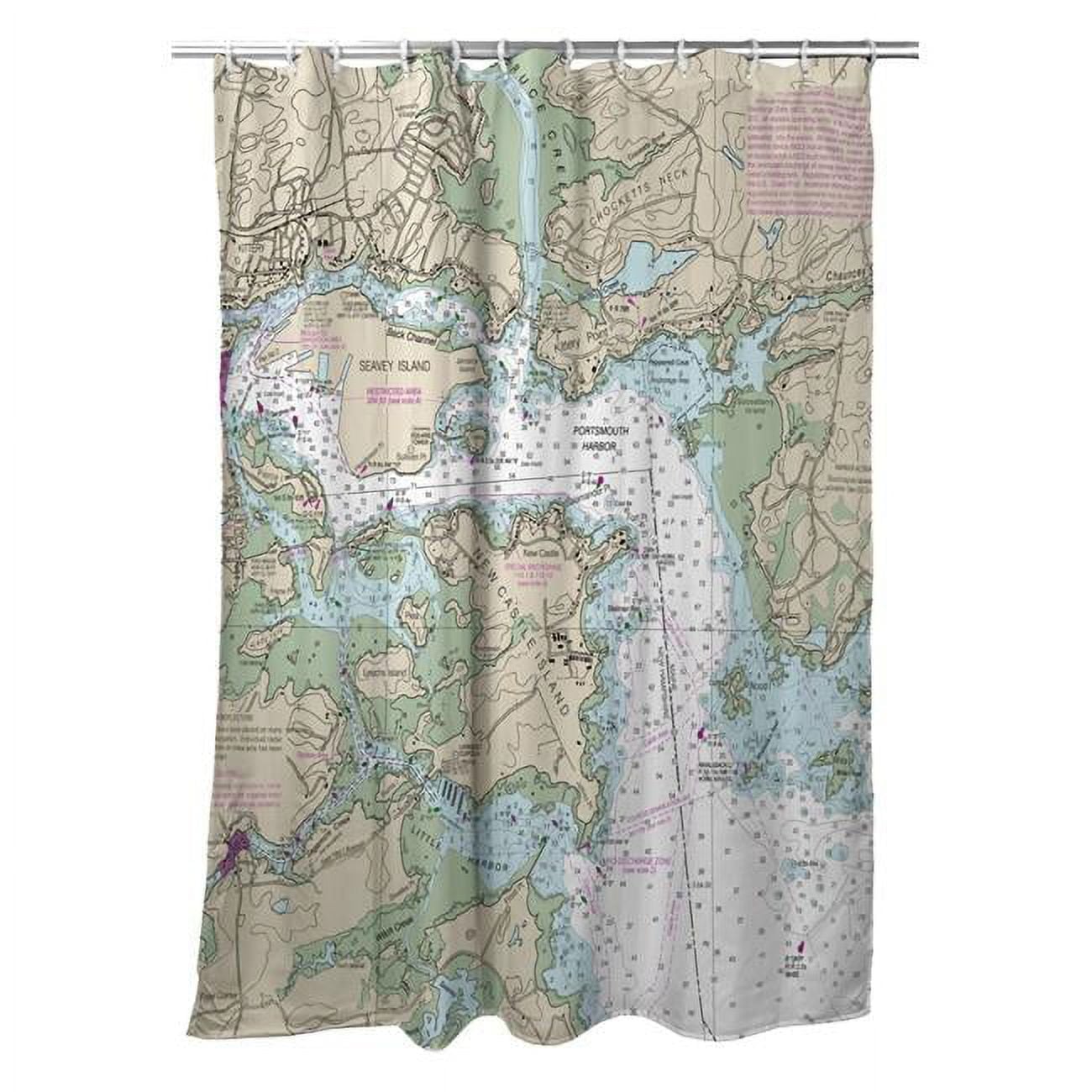 Betsy Drake SH13283PH 70 x 72 in. Portsmouth Harbor, NH Nautical Map Shower Curtain