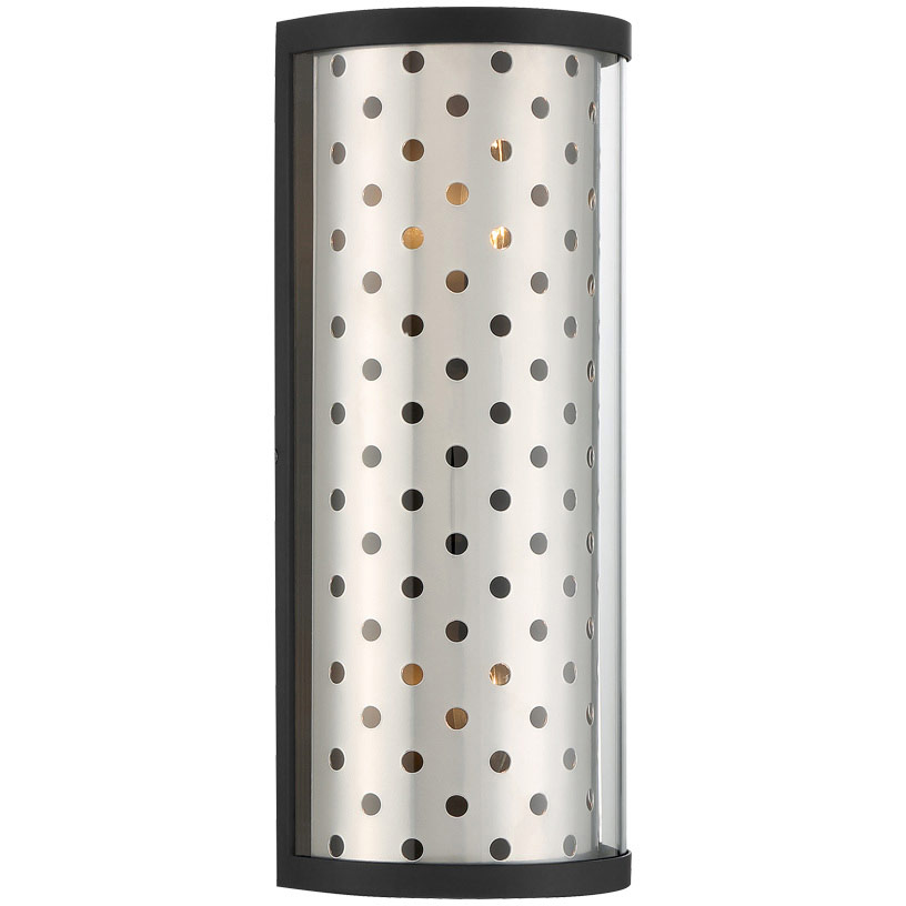 Eurofase Lighting-39414-014-Collection: Grado, Material: Glass, Finish Color: Chrome, Width: 6.75", Height: 16", Depth: 4", Backplate Width: 6.75", Backplate Length: 0.5", Lamping Type: Incandescent, Number Of Bulbs: 2, Wattage: 60 Watts, Dimmable: No, Moisture Rating: Dry Rated, Desc: This remarkable collection features modern industrial style with a silver or gold inner lining. The metallic sheet is perfectly stamped to create a flawless pattern throughout its surface. A clear glass panel surrounds the perforated masterpiece adding a layer of elegance that does not shroud its overall form. To finish off this unique piece, rich black framework loops around to tie it all together. Metallic perforated panel / Clear Glass Shade / Industrial style / Incandescent Lighting / Modern. / Warranty: 12 Months / Assembly Required: Yes / Shade Included: Yes / Dimable: Yes . ,-Grado - 2 Light Wall Sconce-Chrome Finish