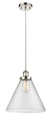 INNOVATIONS LIGHTING 916-1P-PN-G44-L BALLSTON X-LARGE CONE 1 LIGHT 8 INCH SEEDY GLASS MINI PENDANT, POLISHED NICKEL,...