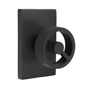 Studio Brass Collection - Privacy Modern Rectangular Rosette with Right Handed Spoke Knob in Flat Black by Emtek Hardware - 5212SPKUS19-RH-238 | MyKnobs
