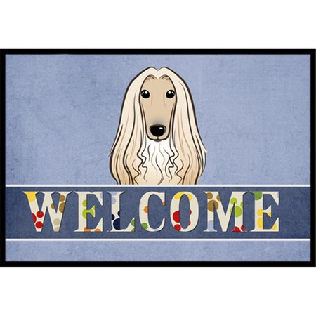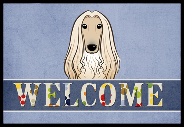 Caroline's Treasures BB1430MAT Afghan Hound Welcome Doormat 18x27, Blue Front Door Mat Indoor Outdoor Rugs for Entryway, Non Slip Washable Low Pile, 18H X 27W
