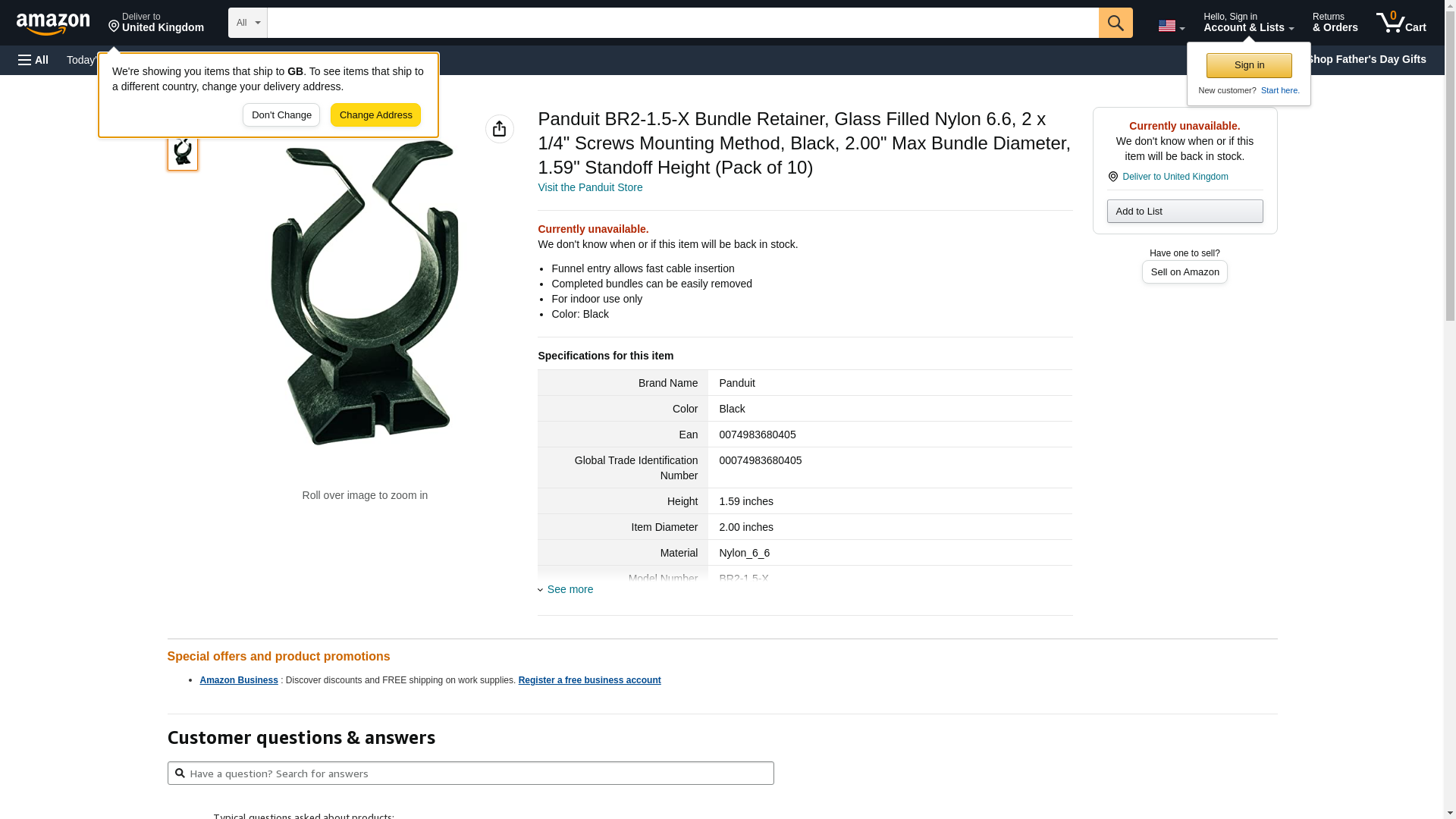 | Feature | <b>Price For:</b> Pack of 5 <b>Manufacturer</b>: Panduit <b>Product Category</b>: Cable Mounting & Accessories <b>RoHS</b>: <b>Brand</b>: Panduit <b>Type</b>: Retainers, Wire Bundle <b>Material</b>: Nylon <b>Color</b>: Black <b>Mounting Method</b>: Clamp <b>Maximum Bundle Diameter</b>: 50.8 mm <b>Size</b>: 40.4 mm <b>Where Used</b>: Cable Bundles <b>Unit Weight</b>: 2.050 lbs |