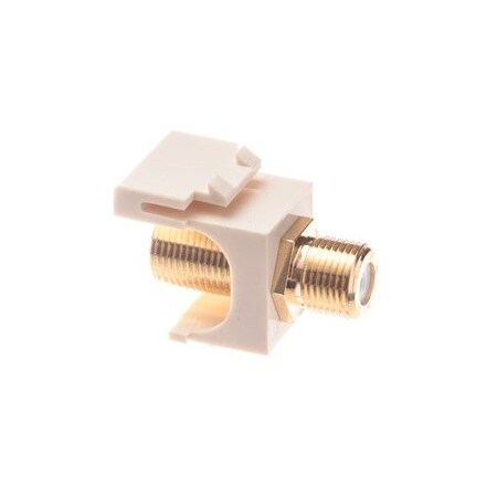 White Gold Plated F Connector Keystone Jack- Gold plating for improved performance with superior signal quality with minimal noise- Rear threaded F-Type connectors for secure in-wall connections with both RG6 and RG59 coaxial cables- Provides a clean and neat appearance installation- Compatible with all standard faceplates, inserts, surface mount boxes, and blank patch panels- UL listed