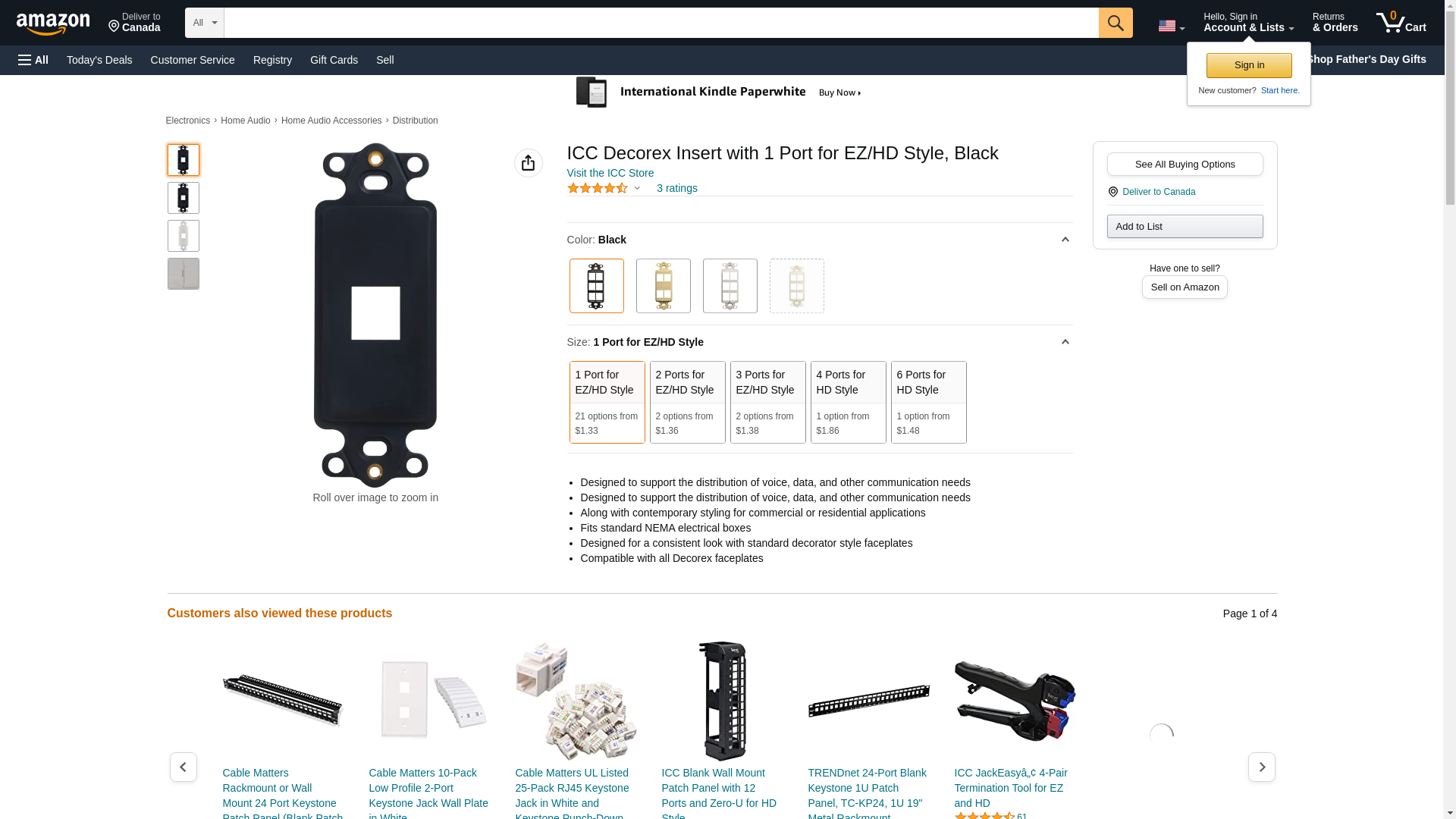Buy ICC IC107DI1BK As low as $6.71 in bulk Out of Stock Icc IC107DI1BK Insert, Decorex, 1-port, Bk