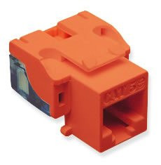 The 25-pack EZ Category 5e modular jacks RJ-45 keystone jacks are 8-position 8-conductor 8P8C and are packaged in bags with a reseal able strip allowing the bags to be reused multiple times preventing loss or mixing of colors or types of modular jacks. The bags have a clear lower area allowing for easy part identification.Features. CAT 5e rated connectors provide excellent performance for data networks requiring maximum speed and bandwidth.. PCB technology provides maximum performance and superior signal quality.. Enhanced crosstalk cancellation reduces return loss and improves performance by rejecting noise and unwanted signals.. Engineered to provide 110 IDC termination reducing installation time.. One piece termination cap allows for a quick and easy termination.. Includes an integrated TIA-568AB color wiring diagram.. Backwards compatible to all lower rated category components.. Compatible with all IC107 faceplates inserts surface mount boxes and blank patch panels.. Compatible with all IC108 furniture faceplates bezels and surface mount boxes.. Used with ICC Category 5e ICPCSC and ICPCSJ series patch cords and 110 punch down tool ICACSPDT00.. 25 modules packaged in packaging bag with 25 termination caps packaged in a separated bag and included in packaging bag.. Exceeds ANSITIA-568-C requirements for permanent channel link and component performances.. UL 1863 compliant.. Color - Red.