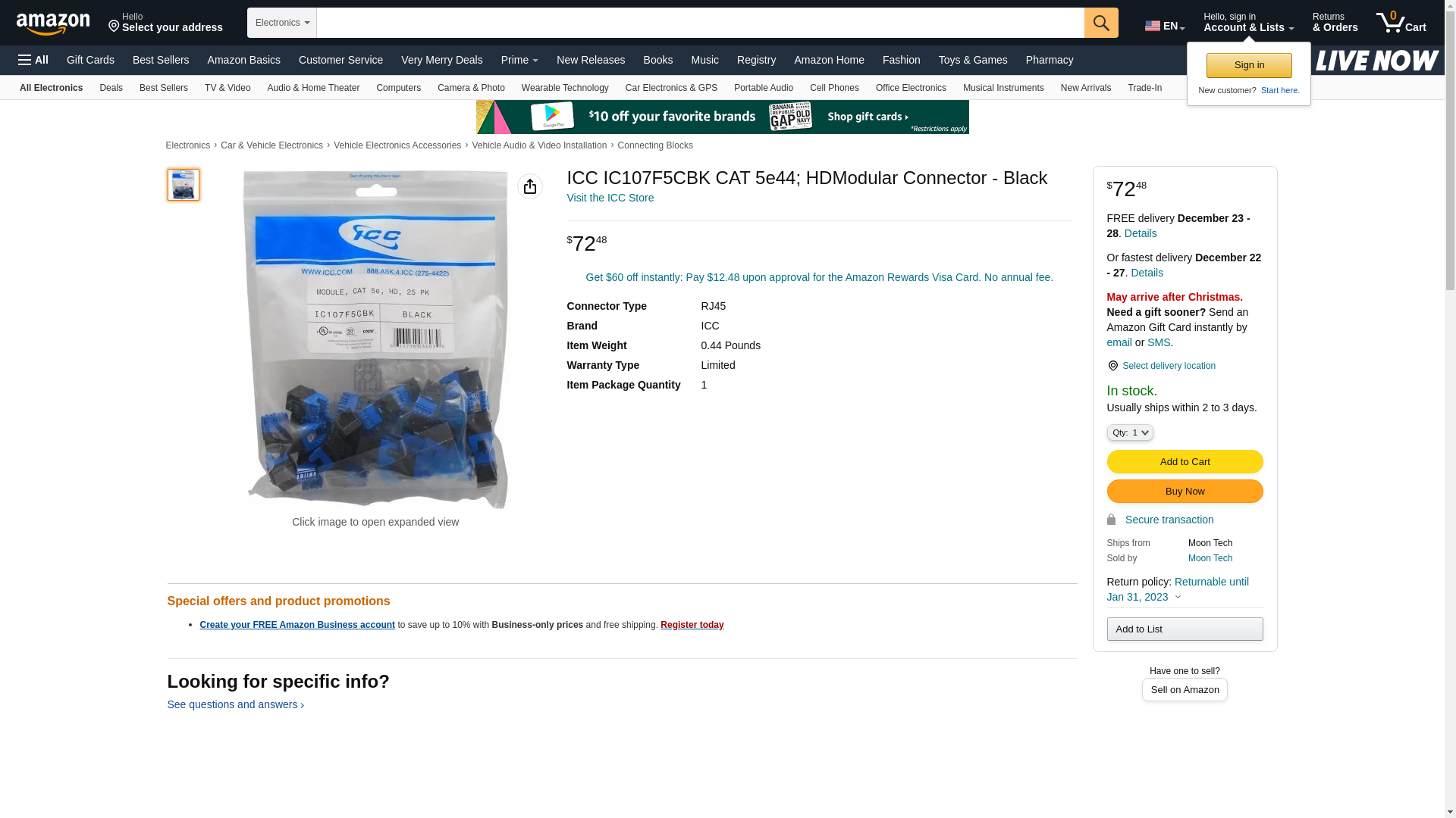 The 25-pack HD Category 5e modular connectors RJ-45 keystone jacks are 8-position 8-conductor 8P8C and are packaged in bags with a reseal able strip allowing the bags to be reused multiple times preventing loss or mixing of colors or types of connectors. The bags have a clear lower area allowing for easy part identification.Features. CAT 5e rated connectors provide excellent performance for data networks requiring maximum speed and bandwidth. PCB technology provides maximum performance and superior signal quality. Enhanced crosstalk cancellation reduces return loss and improves performance by rejecting noise and unwanted signals. Engineered to provide 110 IDC termination reducing installation time. One piece termination cap allows for a quick and easy termination. Includes an integrated TIA-568AB color wiring diagram. Backwards compatible to all lower rated category components. Compatible with all IC107 faceplates inserts surface mount boxes and blank patch panels. Compatible with all IC108 furniture faceplates bezels and surface mount boxes. Used with ICC Category 5e ICPCSJ patch cords 110 punch down tool ICACSPDT00 and 4-pair JackEasy termination tool ICACSPDTEH. Color - Black