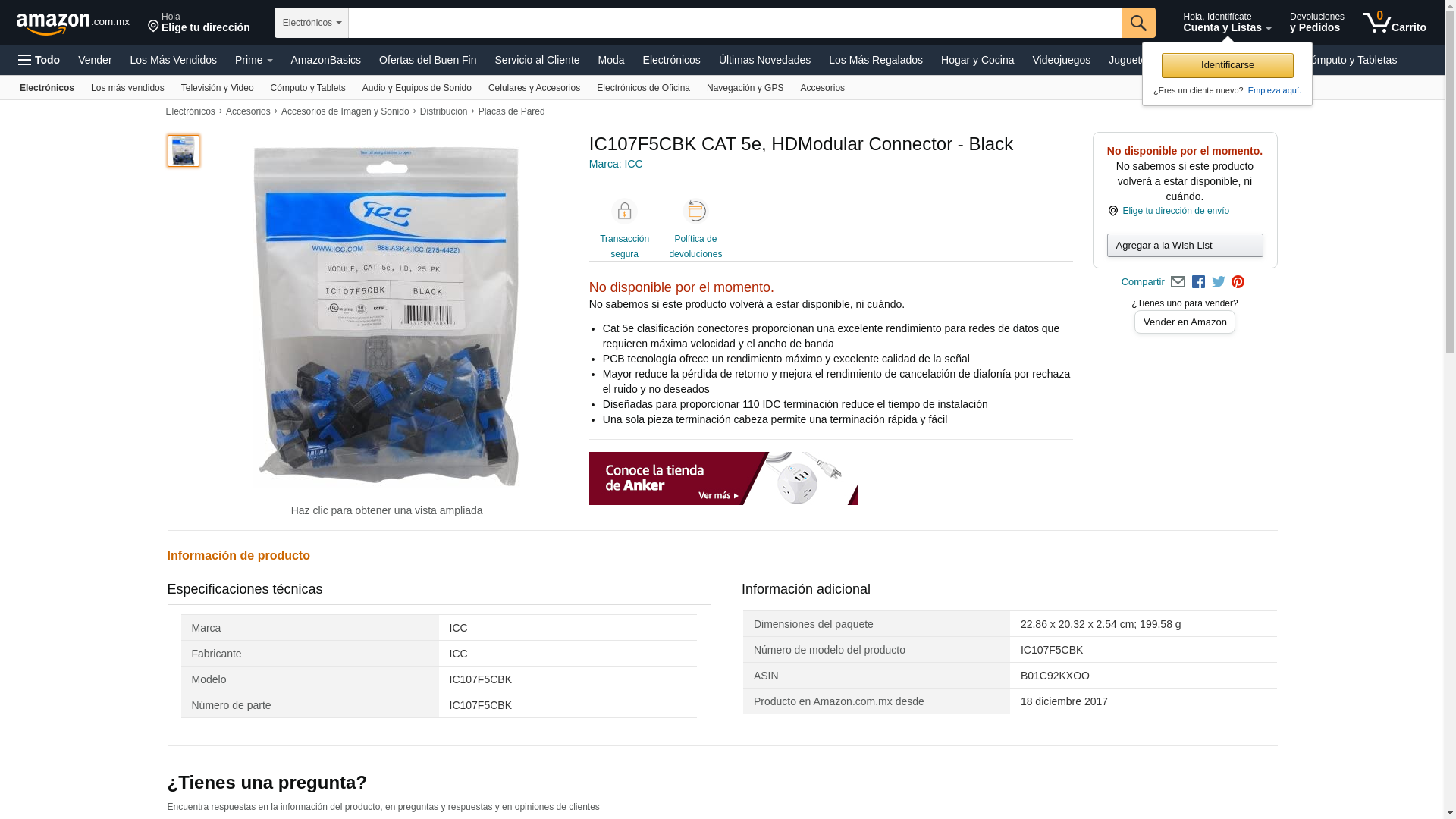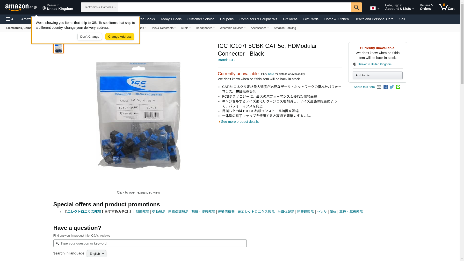 ICC IC107F5CBK CAT 5e44; HDModular Connector - Black