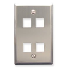 <p>ICC's Stainless Steel Faceplates are equipped to support keystone jacks such as voice, data, video, and audio. Working through-out all work area locations. Our Stainless Steel faceplates are fitted to install connectivity. Ideal for installations such as conference rooms, computer labs, classrooms, and office cubicles. Designed with installation versatility these faceplates provide a professional appearance. This particular faceplate is single gang, built with 4 ports for the EZ/HD style.</p><ul><li>Configured to fit standard single gang outlet box.</li><li>Designed to support the distribution of voice, data, and other communication.</li><li>Rugged and durable construction.</li><li>Designed to help cover uneven and jagged drywall cuts.</li><li>Accommodates a wide variety of ICC brand snap-in modules.</li><li>Providing configuration flexibility.</li><li>Accepts all ICC brand modules.</li><li>ANSI/TIA-568-C and UL 1863 compliant.</li></ul>