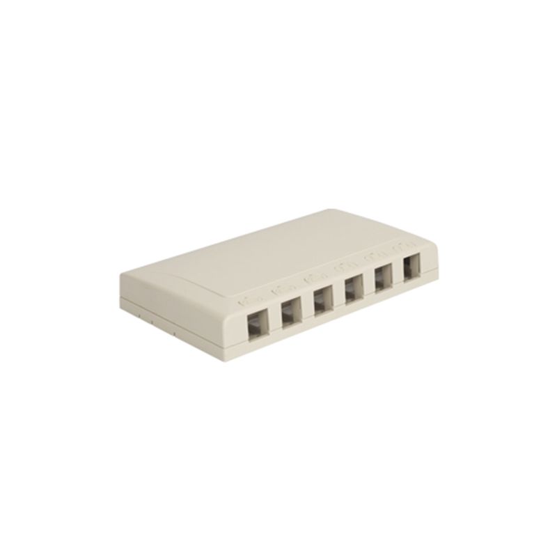 <p>6-port Elite design accommodates six modular connectors and six color icons. Not compatible with USB and HDMI coupler modules due to the size of the USB and HDMI cable connector end.</p><p><strong>Features</strong></p><ul><li>Provides a clean modular surface mount outlet station for voice, data.</li><li>Multiple mounting options including adhesive backing, magnet, and screws.</li><li>Rugged and durable construction.</li><li>Easy system administration with use of enclosed icons.</li><li>Raceway knockouts integrate with raceway systems.</li><li>Used with 3/4" W and 1 1/4" W raceway system.</li><li>Accommodates a wide variety of easy to snap-in modules.</li><li>Providing configuration flexibility.</li></ul>