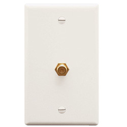 <p>ICC's Integrated Faceplates are equipped to support work area outlets. Our faceplates are fitted to install video connectivity. Ideal for installations such as conference rooms, computer labs, classrooms, and office cubicles. Designed with installation versatility these faceplates provide a professional appearance. This particular wall plate design is for an F-Type application.</p><p><strong>Features</strong></p><ul><li>Configured to fit standard single gang outlet box.</li><li>One piece design that requires no assembly.</li><li>Rugged and durable construction.</li><li>Gold plated F-Type connector for improved performance with superior quality.</li><li>Designed to use with both RG6 and RG59 coaxial.</li><li>Rear threaded F-Type connector for secure in-wall connections.</li><li>ANSI/TIA-568-C and UL 1863 compliant.</li></ul>